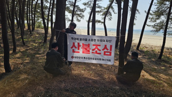충남 | 충남지부 태안군지회 몽산포~청포대 둘레길 산불조심 캠페인 및 현수막 설치 활동(2025년 4월 27일) 페이지 정보 작성자 박종원 작성일25-04-28 10:17 조회801회 댓글0건 관련링크 이전글 다음글 목록 본문 1. 일 시 : 2025년 4월 27일(일요일) 2. 장 소 : 몽산포~청포대 둘레길 일대3. 시 간 : 오전10시~14시4. 내 용 : 산불조심 캠페인 이전글 다음글 목록