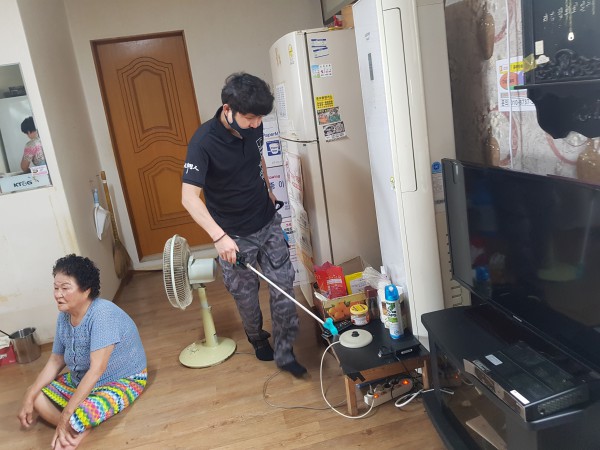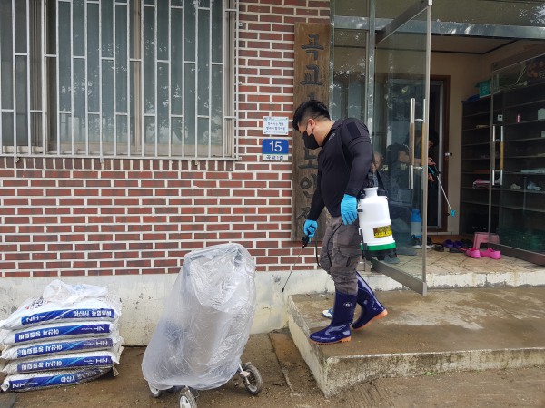 충남 | 충남지부 아산시지회 아산 수해 침수지역 감염병 예방 방역 소독 활동(2020년 8월 4일) 페이지 정보 작성자 박종원 작성일20-08-04 18:32 조회13,271회 댓글0건 관련링크 이전글 다음글 목록 본문 [1] 1. 일 시 : 2020년 08월 04일 화요일 2. 장 소 : 대피소 송곡초등학교, 대피소 모산초등학교, 대피소 거산초등학교, 곡교1리 마을회관, 곡교2리 마을회관, 아산시 남동 침수 가옥 3. 내 용 : 아산시 집중호우로 인해 침수된 가옥 및 마을회관과 주민들이 대피한 초등학교를 방문하여 감염병 예방 차원에서 연막 소독과 함께 살충, 살균, 코로나19 방역소독 활동을 실시 하였습니다. 이전글 다음글 목록