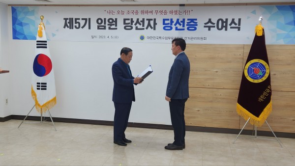제5기 임원선출 당선자 당선증 수여식 페이지 정보 작성자 최고관리자 작성일23-04-05 15:37 조회2,853회 댓글0건 관련링크 이전글 다음글 목록 본문 대한민국특수임무유공자회 선거관리위원회(위원장 서상수)는 2023년 4월 5일 오전 본회 4층 대강당에서 제5기 임원선출 당선자에 대한 당선증 수여식을 진행하였습니다. 이전글 다음글 목록